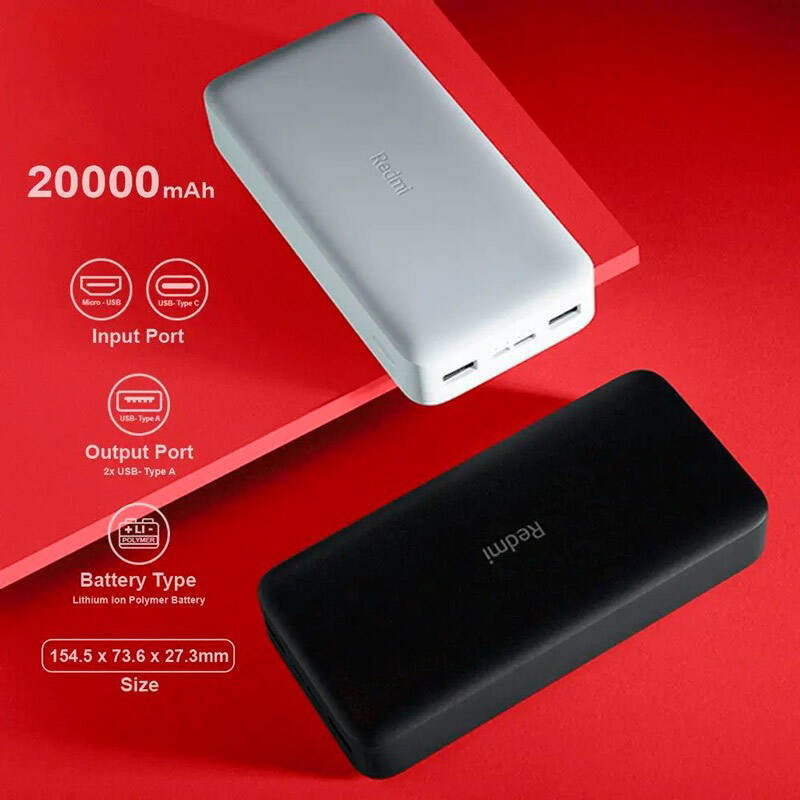 باتری شارژر همراه از نوع لیتیوم پلیمری با ظرفیت ۲۰ هزار میلی آمپر ساعت، توان خروجی کلی ۱۸ وات