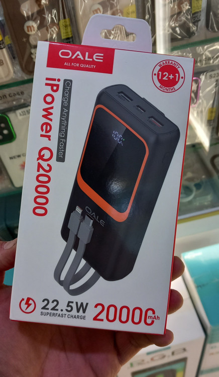 پاوربانک مدل OALE Q20000 ظرفیت 20000 از مدل های جدید بازار است که 2 عدد کابل متصل هم دارد تا دیگر نیاز به کابل مجزا نداشته باشید. اگر قصد خرید یک پاوربانک جدید دارید ما به شما این مدل را پیشنهاد می کنیم